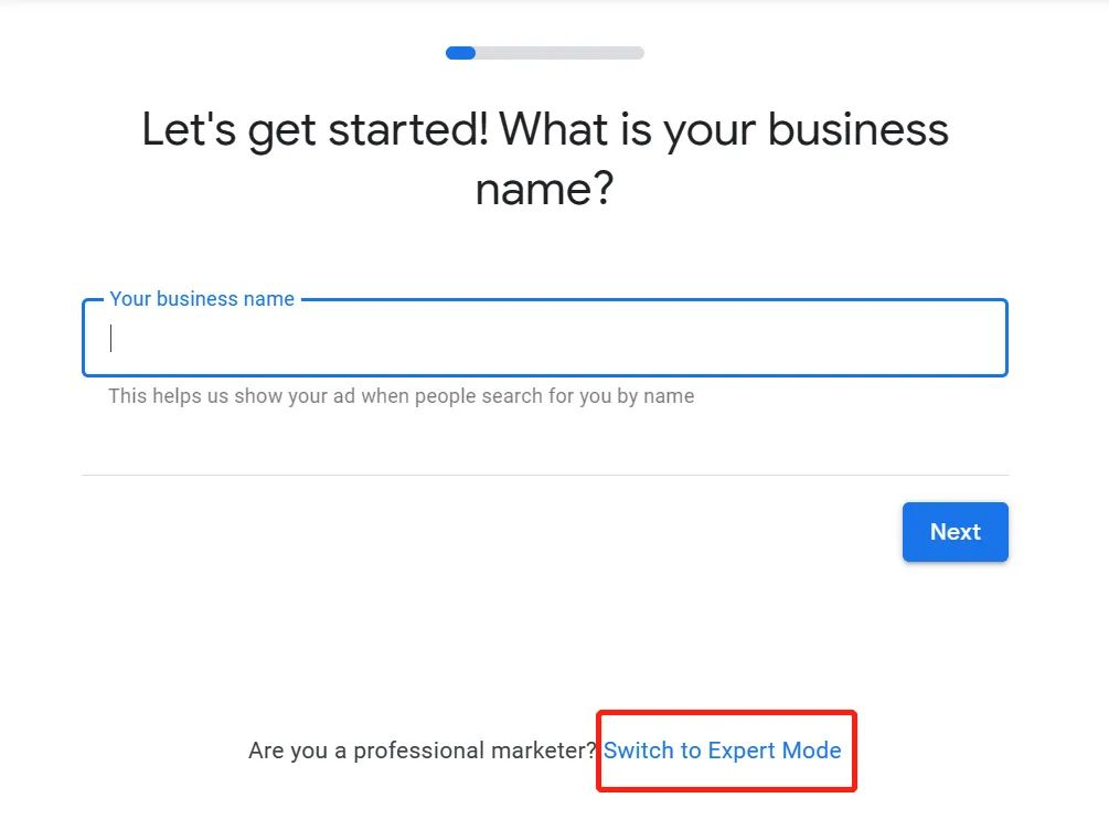 創建過程中會有諸多設置問題,對于僅用于關鍵詞研究而暫不投放廣告的獨立站運營者,建議選擇 “Expert Mode 專家模式”。