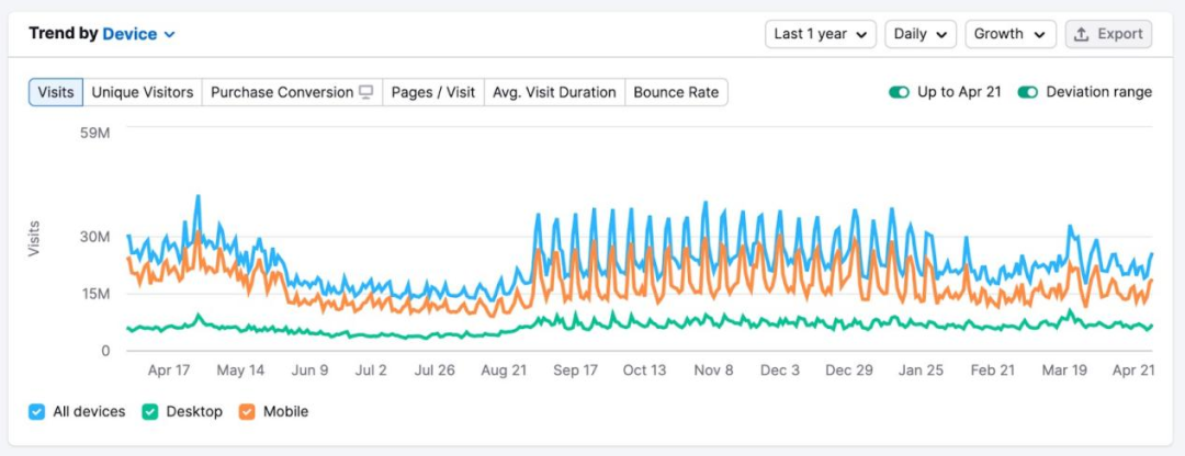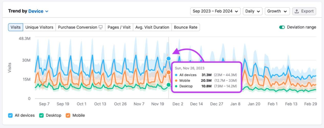 查看行業流量趨勢,找出目標受眾參與度最高的時段,這可以幫助你確定發起營銷活動和推廣產品的最佳時機。
