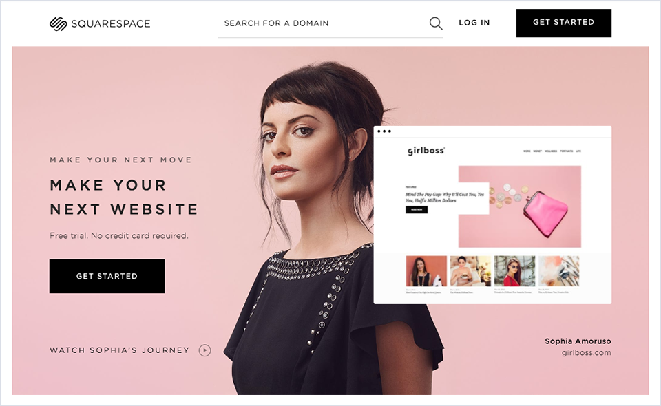 自助建站應用Squarespace用高清的客戶肖像圖配合產品界面,來表現他們的應用可以為不同人群定制專屬網站的理念: