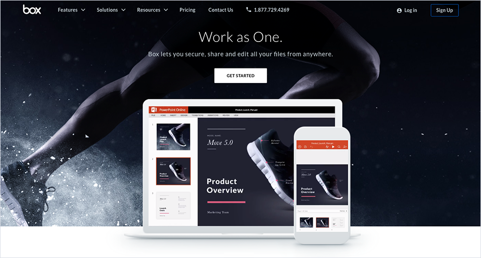 云存儲應用Box用產品界面和照片混搭的形式來表現“Work as One”的產品理念: