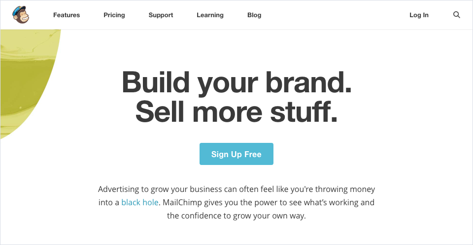 MailChimp的首屏標題簡短有力: