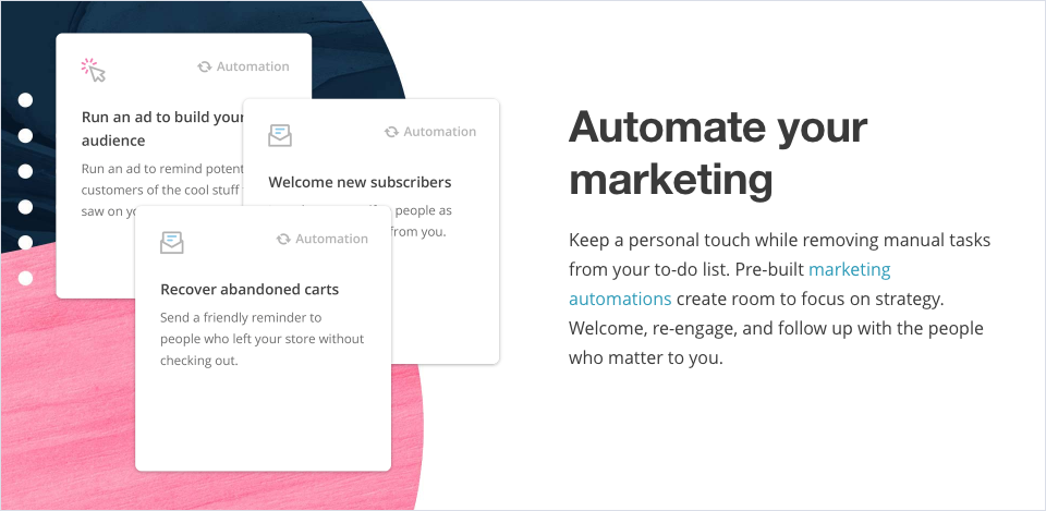 MailChimp用與首屏標題同樣風格的文案,配合界面圖來強化USP:
